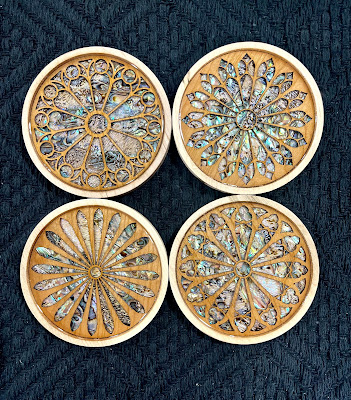 The Crux Calix Company began in 2016 as a company for carpentry design and woodwork, and has since evolved into an umbrella company for many personal interests and passions, including the hardwood and abalone shell creations we are showcasing today. We are lifelong crafters, but we just started doing craft shows a few months ago. Our hardwood and abalone coasters began as an idea in 2018, and we’ve ramped up production in 2023 so that more people can enjoy our products. This is our first Avant-Garde Art & Craft Show. We are inspired by architectural beauty, history, natural woodgrains, and beauty in patterns in nature.